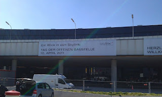 gestern gab es den sogenannten "tag der offenen baustelle" wo sich interessierte die baustelle aus der nähe ansehen durften. bei freiem eintritt, gratis getränk und würstel gab es einige recht wissenswerte informationen zum neuen terminal am flughafen wien. zum beispiel wird die trennung der passagiere (ankunft/abflug/schengen/non-schengen) auf 3 ebenen stattfinden. der probebetrieb soll in q4 2011 erfolgen.